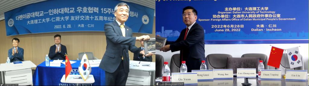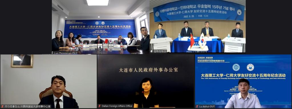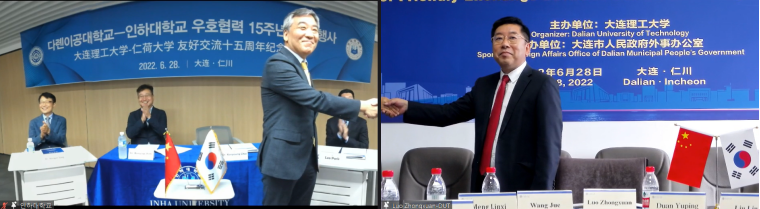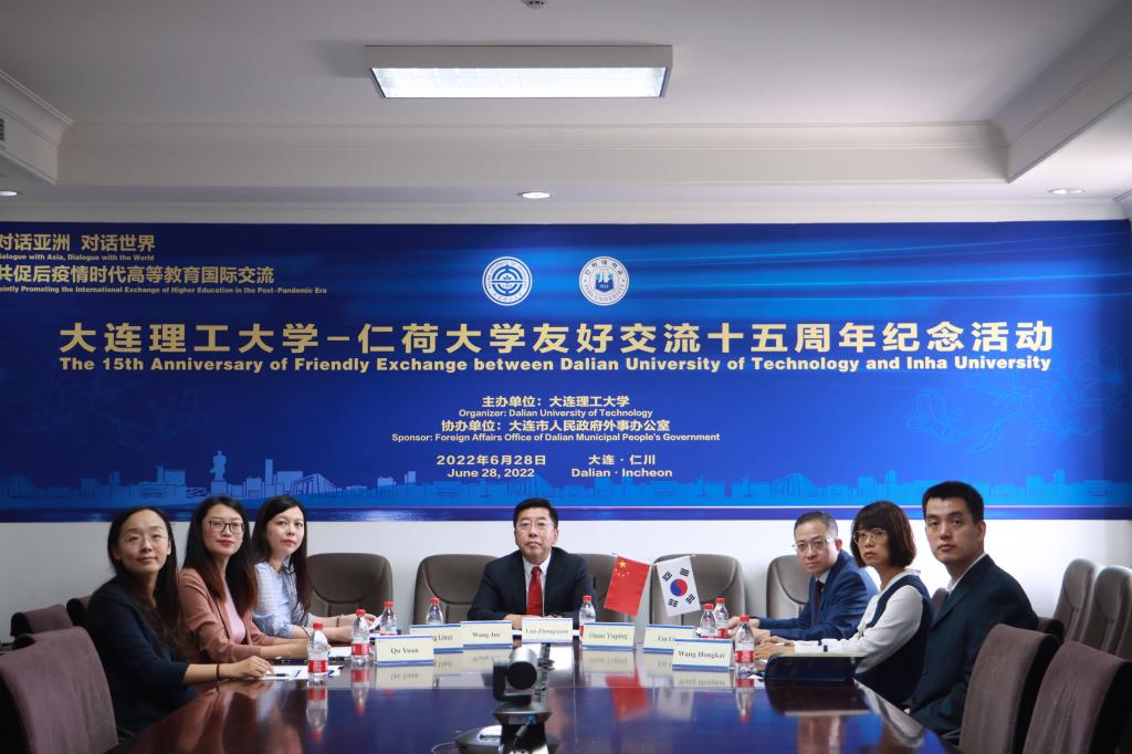 On June 28th, the cloud commemoration of the 15th anniversary of the friendly exchange between Dalian University of Technology and Renhe University was successfully held in a combination of online and offline ways. Mr. Choi Ki-young, Vice President of Inha University, Mr. Guo Yongxi, Representative of the Consulate General of the Republic of Korea in Shenyang in Dalian, Mr. Cheng Yingjun, Director of the Foreign Affairs Office of Dalian Municipal People's Government, Mr. Luo Zhonghyun, Vice President of Inha University, Mr. Lu Anhui, Assistant President of Inha University, and more than 100 relevant representatives from the international exchange management department, mathematics and biomedical engineering departments of the two universities were present.