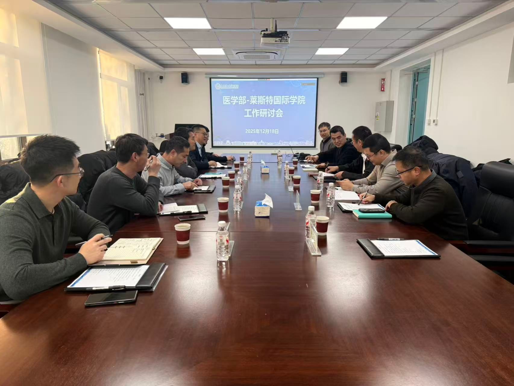 为进一步深化校内学科协同与资源整合,以国际化视野助力新医科发展,12月18日上午,莱斯特国际学院党委书记孙刘劼、副院长(主持工作)刘进轩率学院班子成员应邀来访医学部,开展深入合作交流座谈。医学部党委书记兼常务副部长覃开蓉及班子成员,药学院相关负责人及教师代表参加交流。会议由医学部副部长王洪凯主持。