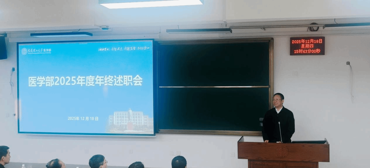 2025年12月18日下午,医学部2025年度教工大会暨领导干部述职大会在厚坤楼151会议室圆满召开。会议全面总结学部2025年度工作成效,系统擘画未来发展蓝图。医学部部长曲鹏、党委书记兼常务副部长覃开蓉,学部全体班子成员及全体教职工参会,会议由学部副部长魏健雄主持。
