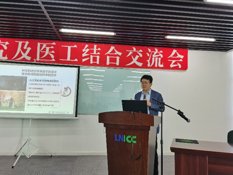 大连医科大学附属二院刘志宇院长做了《漫谈“三无”手术刀精准微创的外科历史变迁》,介绍了医工交叉在生命医疗领域的重要意义。人工智能大连研究院院长江贺、机械工程学院舒利明教授也做了主题报告,为下一步几方开展医工融合奠定了基础。