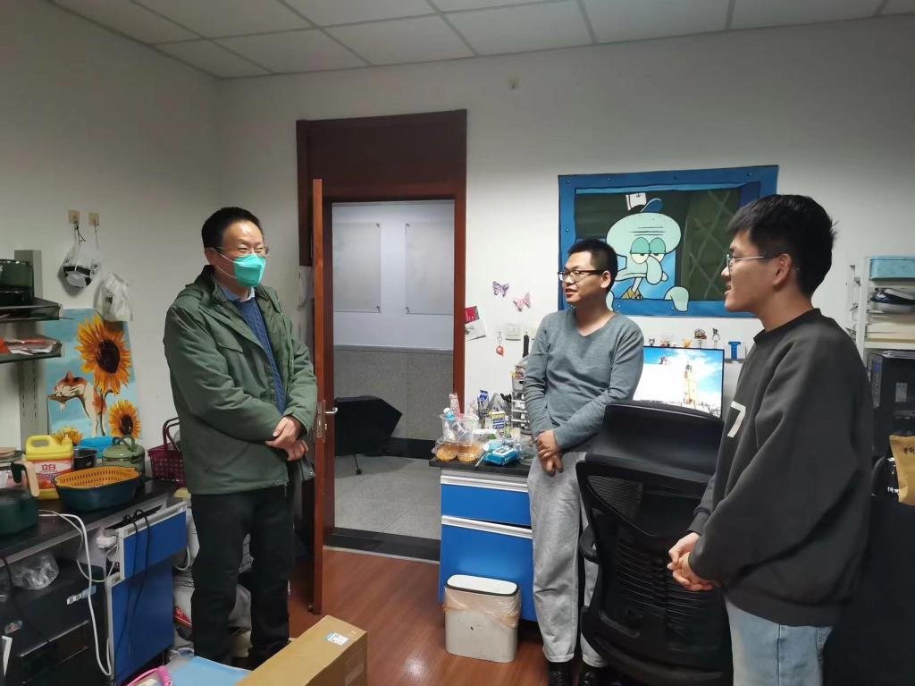 安全检查工作结束后,覃开蓉书记与在校研究生进行了近距离、亲切的交流,详细询问了大家近期的学习、科研和生活情况,了解学生们的思想动态,细心叮嘱同学们一定要提高疫情防控意识,与学部同心同向,携手同行,共筑疫情防控屏障。