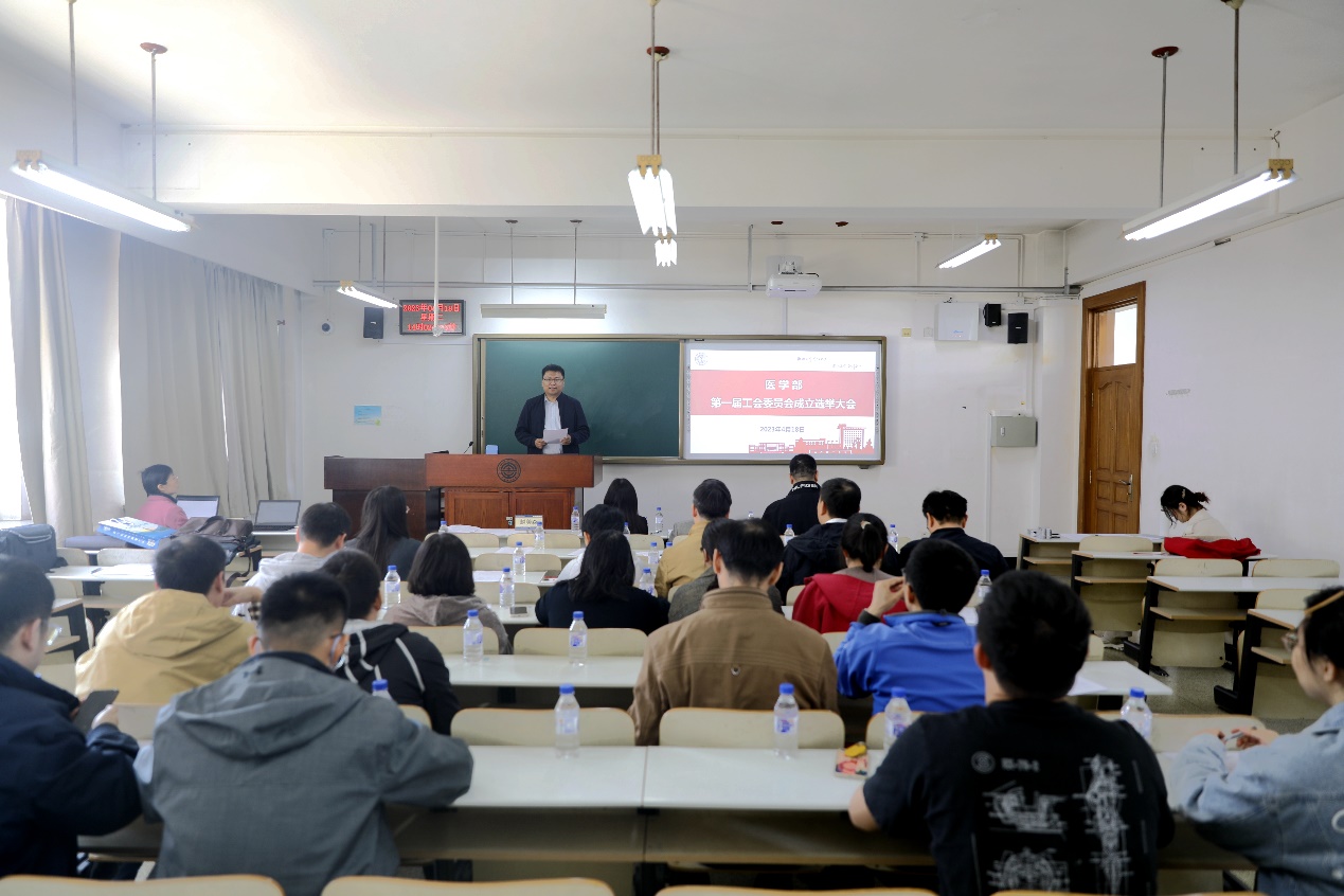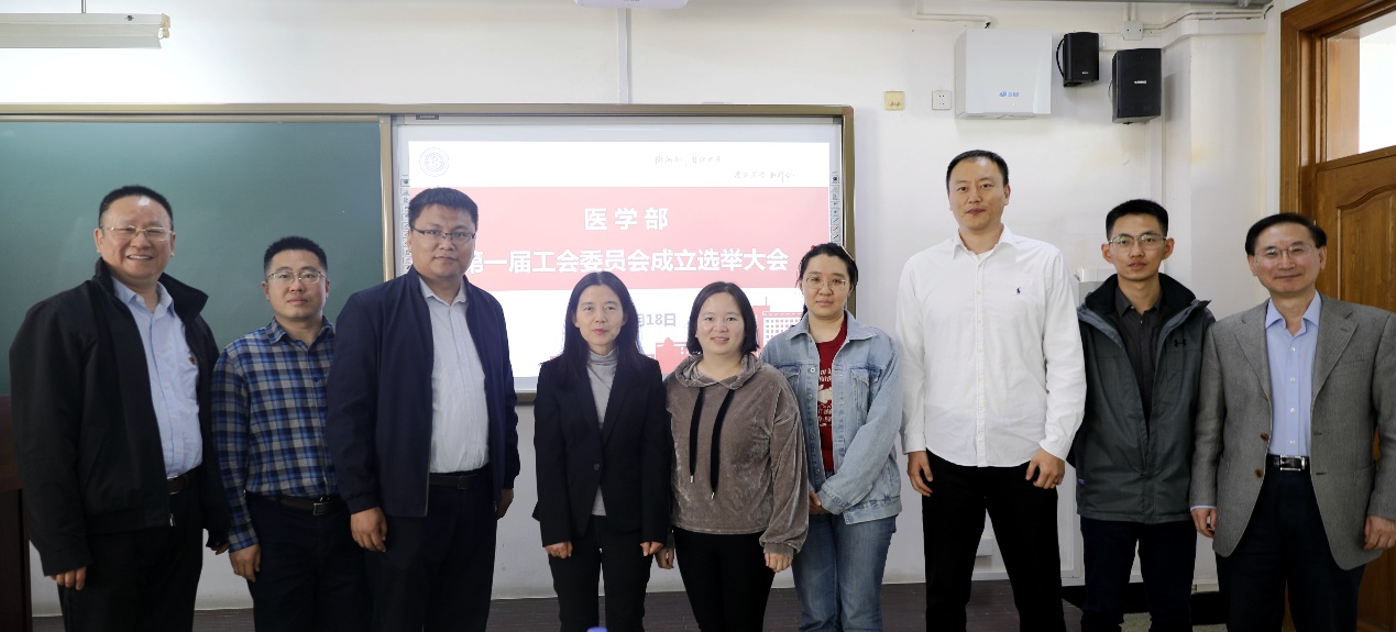 习近平总书记强调:工会是党联系职工群众的重要桥梁和纽带。工会工作是党的群团工作、群众工作的重要组成部分,是党治国理政的一项经常性、基础性工作。为更好地发挥工会这一群团组织——“职工之家”的职能和作用,进一步提升医学部教职工的凝聚力、向心力,保障和促进学部各项工作顺利开展,根据《中国工会章程》有关规定,经多方酝酿和充分准备,医学部于4月18日下午在校综合一号楼354室召开了第一届工会成立大会。学部党政领导班子全体成员及工会会员共25人参加会议,校工会副主席李丽老师出席大会并作讲话。大会由学部党委副书记、副部长赵美森主持。