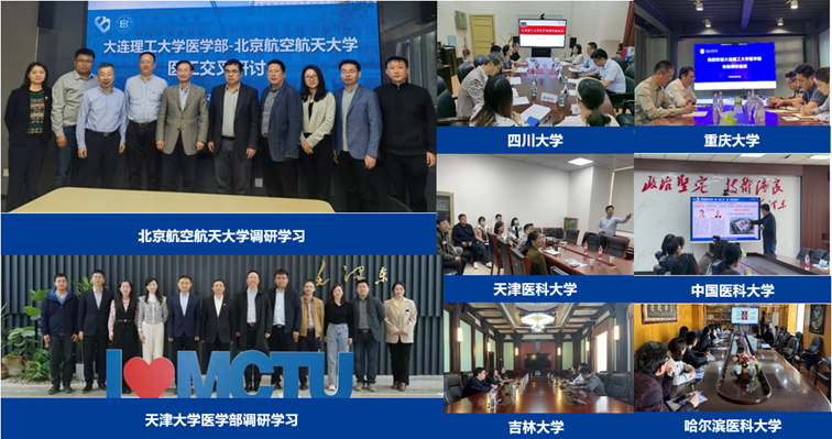 学部部长曲鹏教授、党委书记兼常务副部长覃开蓉教授带队,已实地调研9所高水平医药类大学,足迹遍布国内传统医学学府与发展新兴医科的综合类高校,包括:吉林大学、四川大学、天津大学、北京航空航天大学、重庆大学、中国医科大学、天津医科大学、哈尔滨医科大学、沈阳药科大学。学部调研组边走边学、边学边悟,与各高校基础医学、药学、生物医学工程等相关学科的党政领导座谈交流,围绕医学部体制机制建设、人才引进与考核标准、领军人才培养、医学类高端人才培养方案等进行了深入交流。通过调研,医学部系统深入的学习了兄弟高校在人才队伍建设、“新医科”人才培养体系建设和高层次医工交叉平台建设方面的先进经验,并和部分单位就基层党支部联学共建达成一致意见。调研同期,学部还组织专门人员通过多渠道、多层次、多形式在对应高校开展人才引进招聘宣讲,广泛开展人才引进工作。