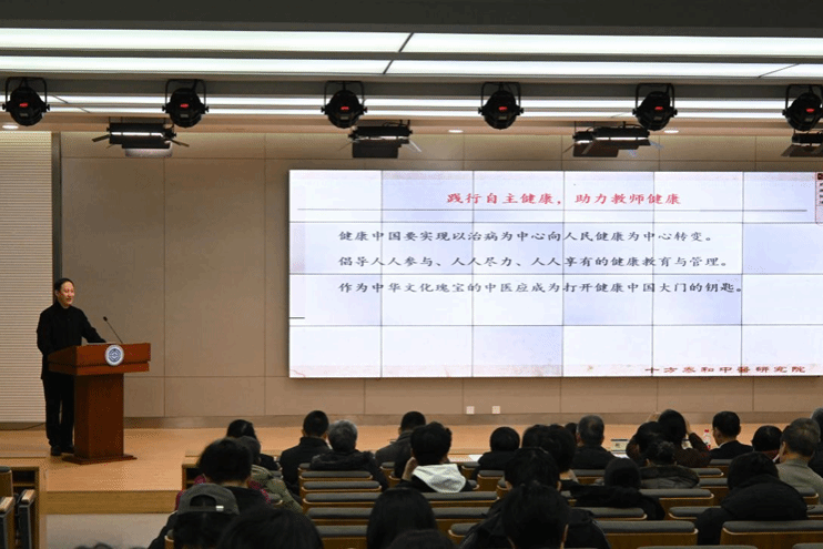 12月12日上午,由校工会、离退休工作处、医学部联合举办的健康专题讲座在学生文化中心五楼报告厅举办,北京十方泰和中医医学研究院杜冰院长现场做题为《践行自主健康,助力教师健康》讲座。校学术委员会主任、中国工程院院士郭东明出席本次讲座,校工会、离退休处、医学部以及相关学部学院领导、老师参加活动。讲座由医学部党委书记兼常务副部长覃开蓉主持。