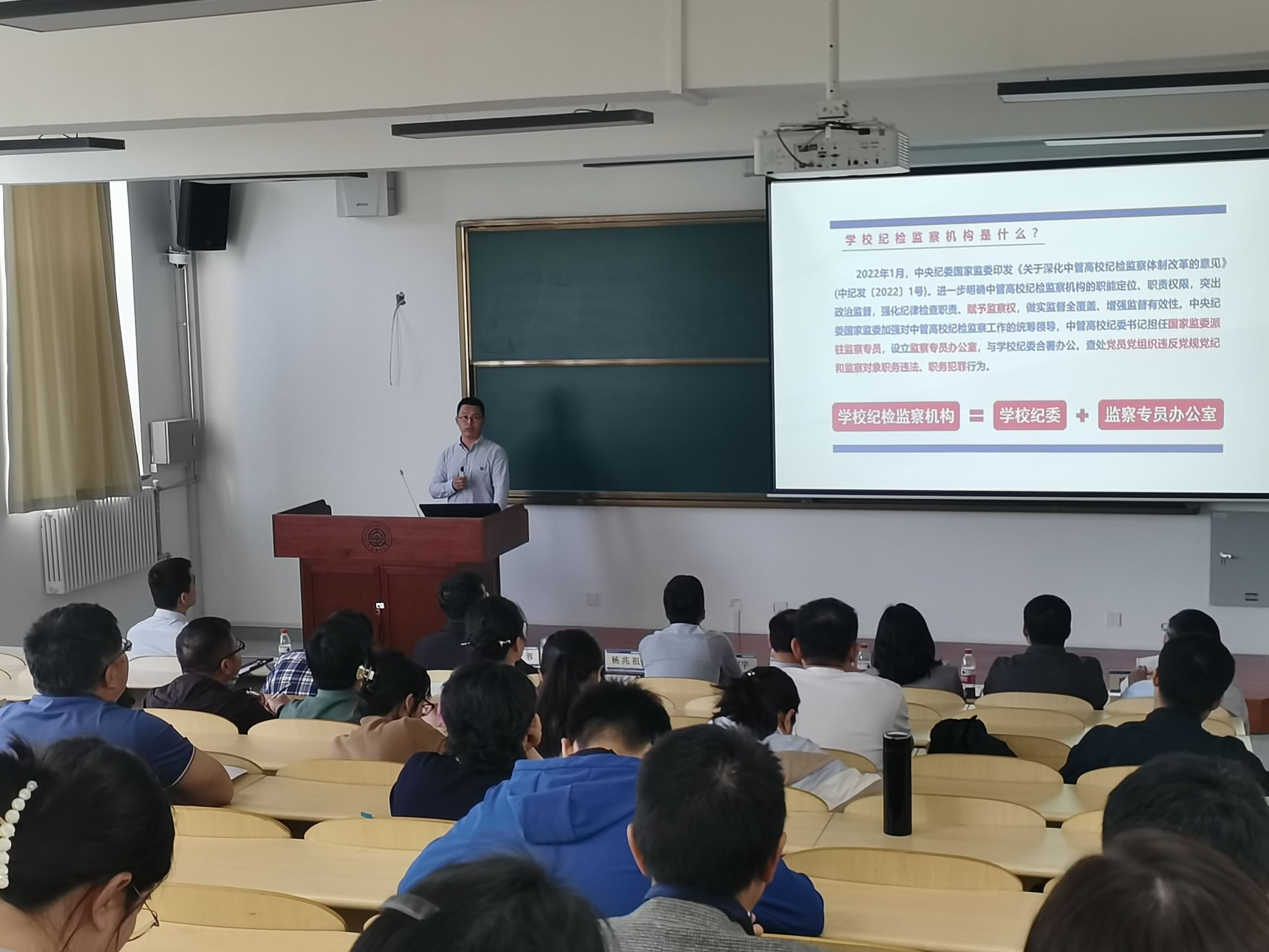 杨兆祖做《学纪 知纪 明纪 守纪 团结奋进助推学校事业加速卓越》党规党纪宣讲报告,从《中国共产党纪律处分条例》的背景、意义和重点内容解读进行了阐述,并结合具体案例,分析了当前党员干部在遵守纪律方面存在的问题和不足,提出了加强党性修养、筑牢思想防线、增强纪律意识等具体要求。