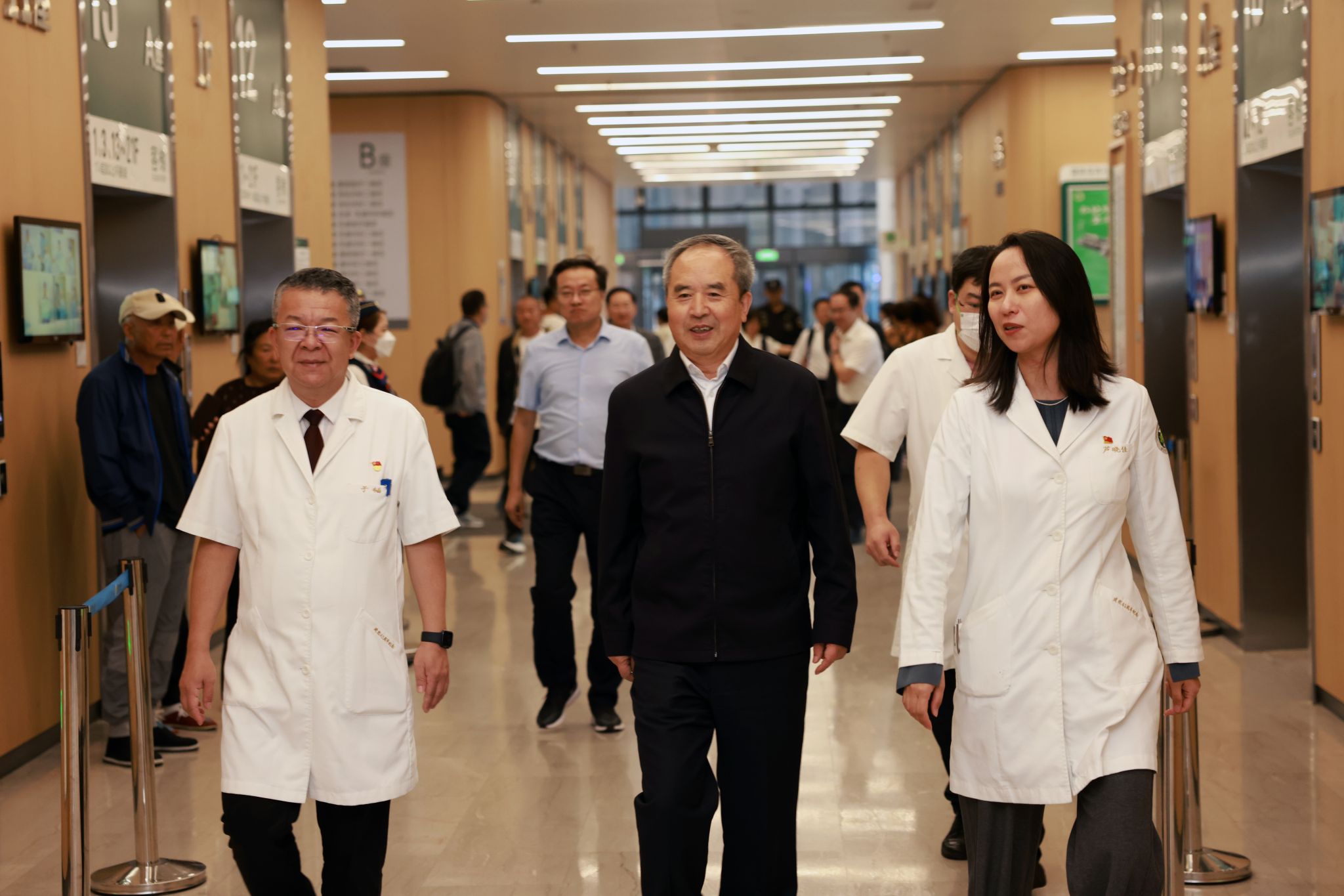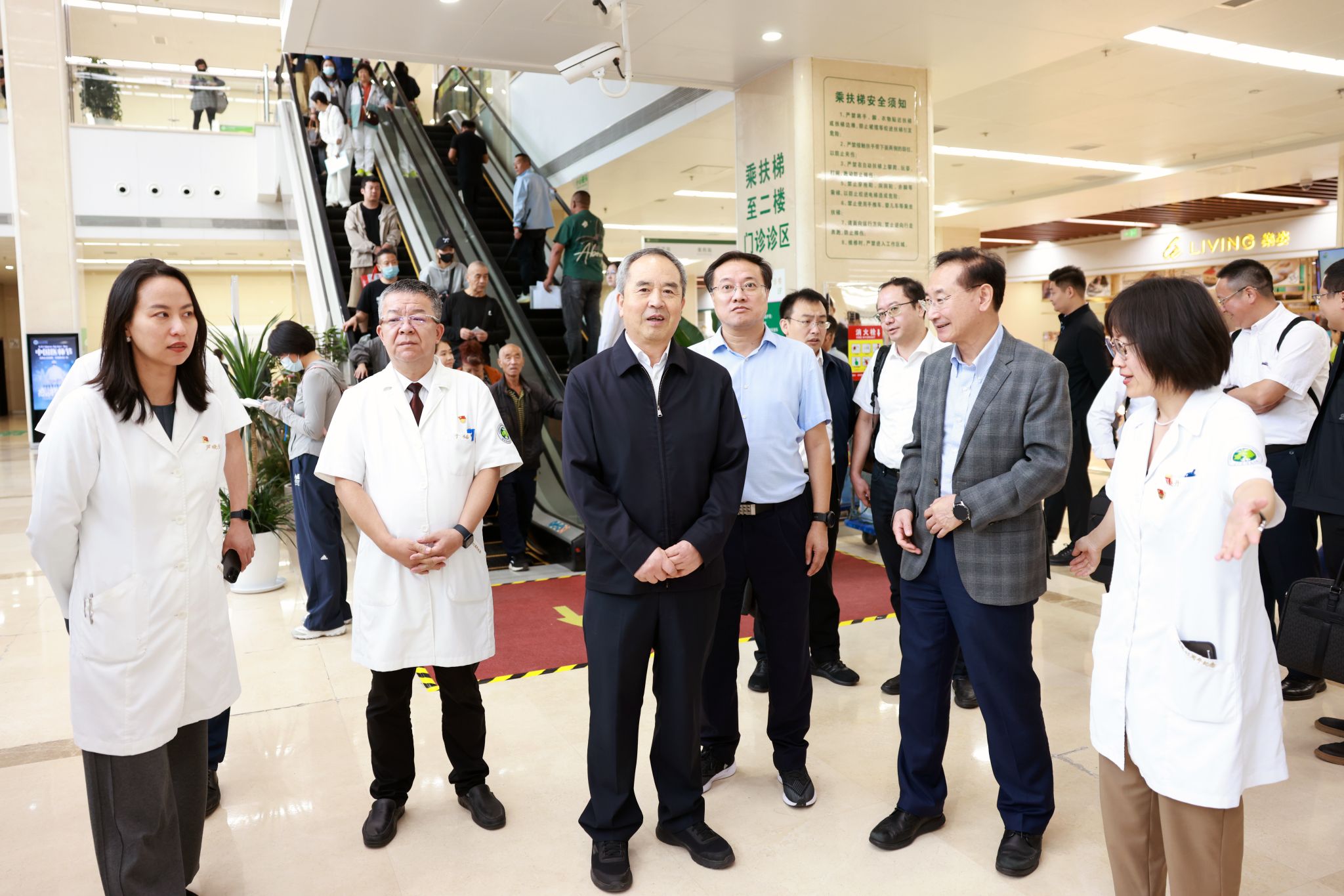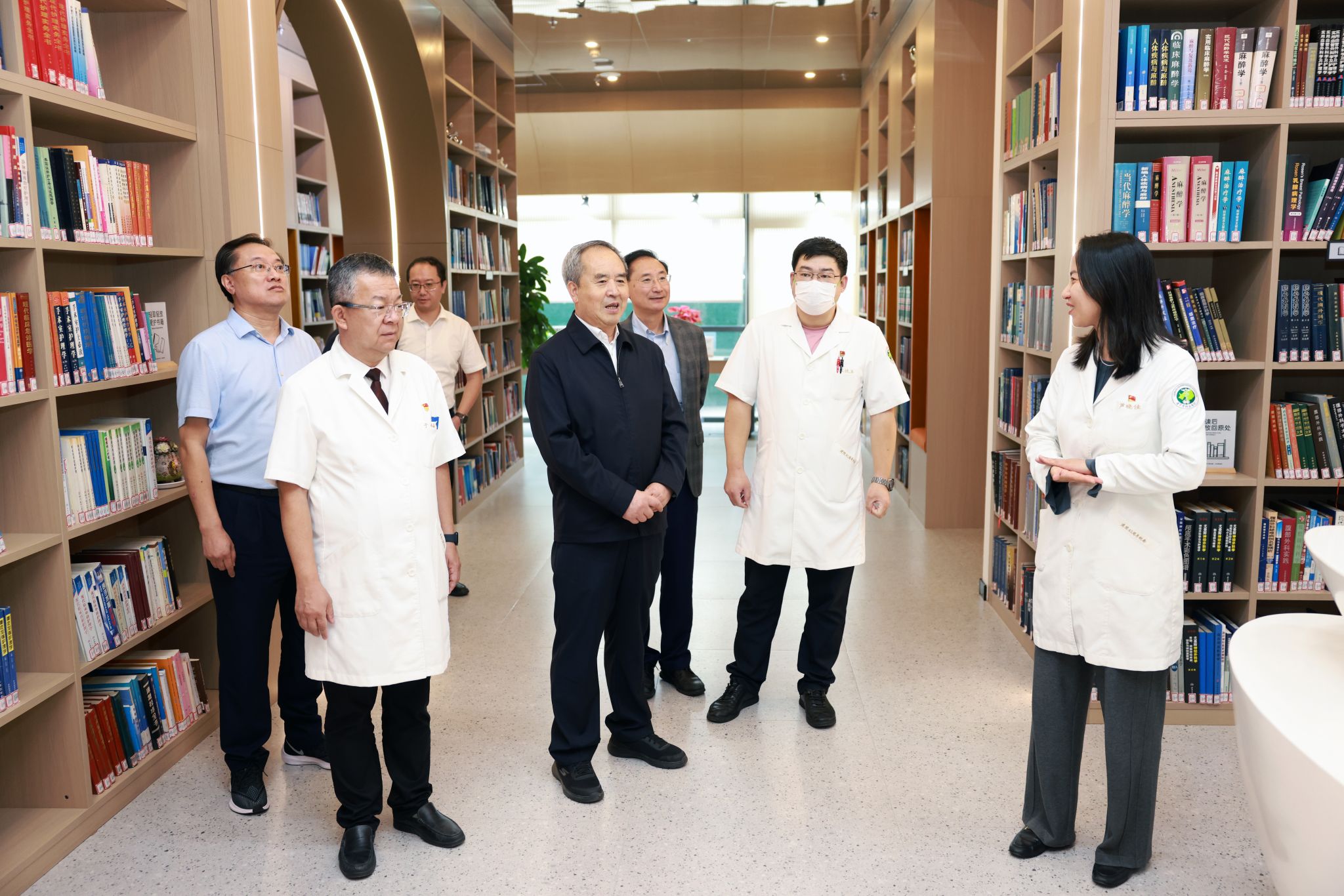 贾振元一行先后参观了医院图书馆、门诊大厅等,并与相关人员亲切交谈,听取了医院发展建设运营情况工作汇报,深入了解了医院科研、教学、人才队伍、沈抚示范区院区项目建设以及在高质量建设的过程中遇到的问题与困境。