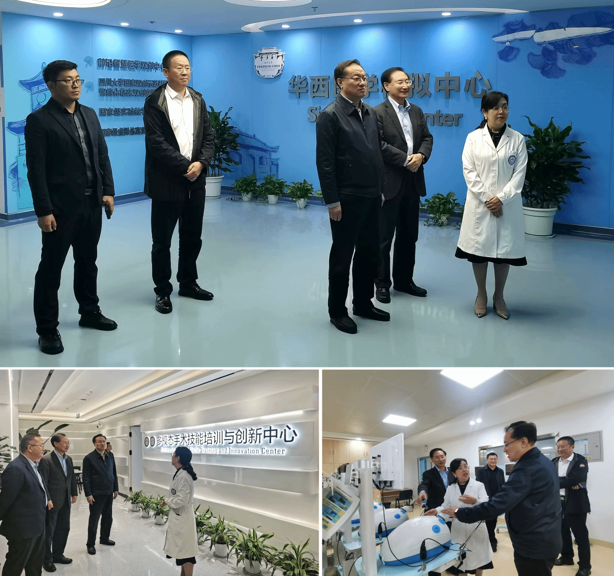 座谈会后,调研组一行参观了四川大学华西医院院史馆、华西医学模拟中心及多模态手术技能培训与创新中心等临床技能中心,进一步学习了解华西医院在医学人才培养方面的先进教学模式。