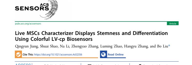 在生物医学研究中,间充质干细胞(MSCs)因其易于获取和强大的分化潜力,在疾病治疗和医美领域备受关注。然而,传统的MSCs检测鉴定方法通常需要固定杀死细胞,无法实现实时监测。该团队开发了一种名为LV-cp的新型非侵入式荧光蛋白探针,能够无损伤鉴定MSCs,同时可以实时监测其分化过程。LV-cp探针基于“开启型”荧光蛋白(Turn-on FPBs),当探针与MSCs细胞结合时,荧光蛋白的荧光信号会显著增强,从而实现高精度的细胞检测和识别。此外,LV-cp探针还展示了其在细胞纯化中的应用潜力。通过流式细胞术,团队成功分离出高纯度的MSCs,并验证了分选后的细胞在分化过程中具有良好的功能完整性。这一技术大大简化了传统基于抗原-抗体免疫反应的MSCs检测方法,其应用前景广阔,有望在组织工程、干细胞治疗和医美等领域发挥重要作用。(论文链接https://doi.org/10.1021/acssensors.4c02356