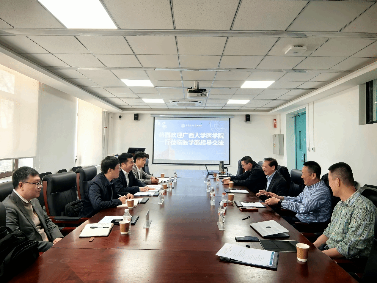 2025年3月25日上午,广西大学医学院党委书记李波一行四人到访医学部开展调研交流。医学部部长曲鹏、党委书记兼常务副部长覃开蓉及学部领导班子陪同交流,双方围绕医学学科发展、人才培养、科研合作、附属医院建设管理方面等展开深入探讨。