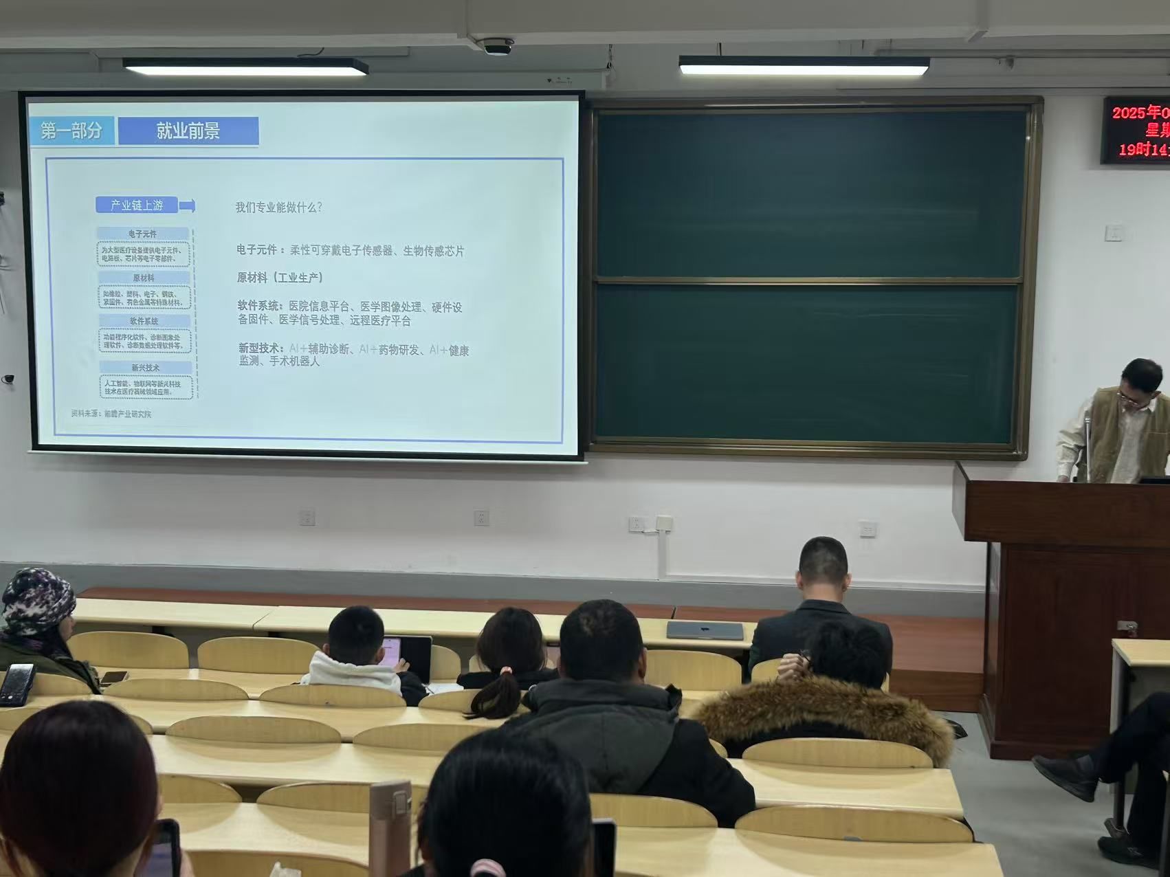 讲座过程中,四位导师分享科研课题组的精彩内容与项目进展,用深入浅出的讲解带领同学们走近专业前沿领域,初探生物医学工程的科研世界。讲座现场,专业导师与现场学生进行了热烈的互动交流,耐心解答了大家关于科研思维训练,科研生涯规划等问题。