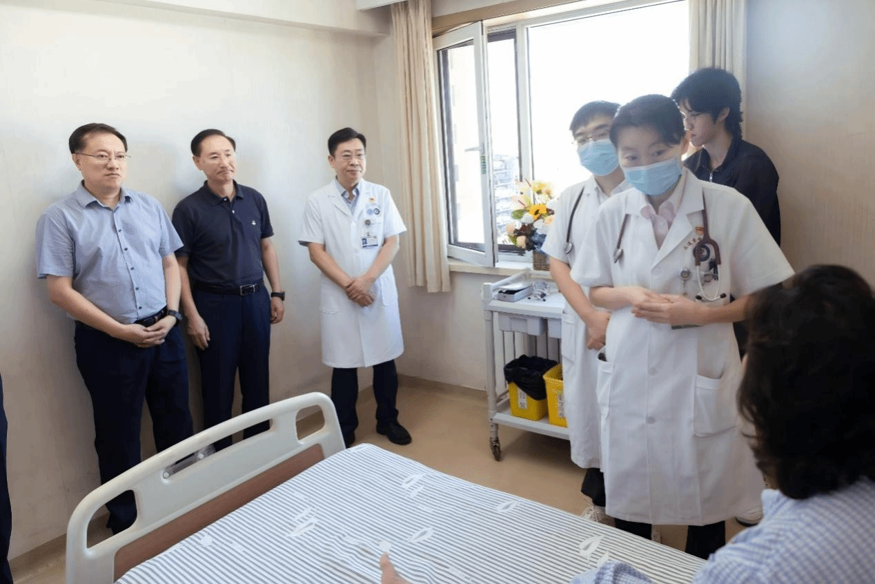 在附属中心医院2号楼肾内科,宋丹一行现场观摩教学查房,并深入病房了解临床教学开展情况。宋丹与临床医学师生代表亲切交流,详细询问教学计划落实与学生实践能力培养状况。他强调,临床教学是医学人才培养的重要环节,要不断提升教学查房质量,有效促进学生将理论知识转化为临床技能。
