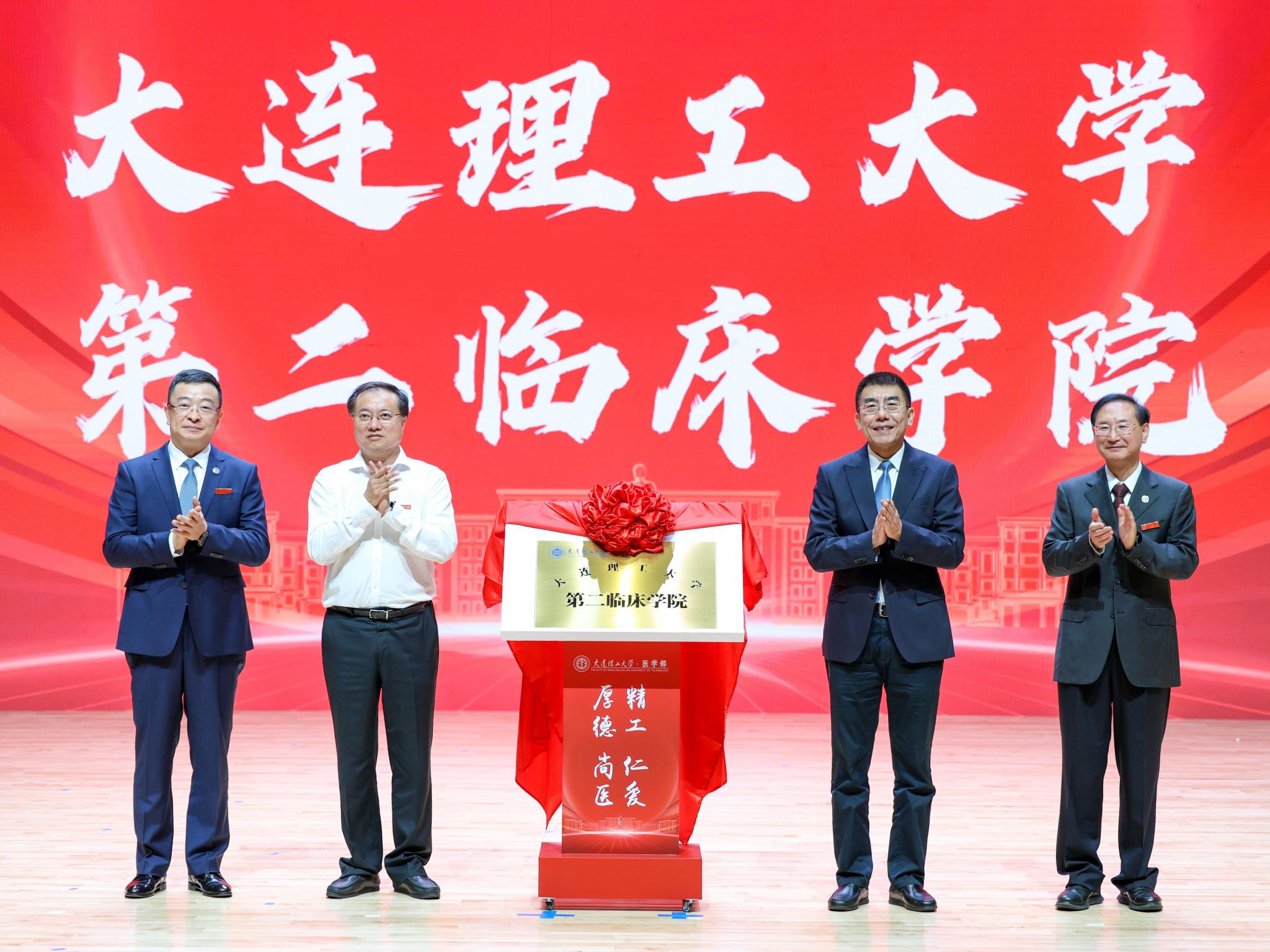 典礼在雄壮的国歌声中正式开幕。本次典礼同时也是我校四所临床学院的揭牌仪式。校党委常务副书记宋丹、大连市卫生健康委员会党组书记、主任王聚共同完成大连理工大学临床肿瘤学院、大连理工大学第一临床学院、大连理工大学第二临床学院、大连理工大学第三临床学院的揭牌。此举标志着“大学-医学部-临床学院”三级管理体系全面确立,将为医学人才培养提供更为坚实和规范的医教研支撑。