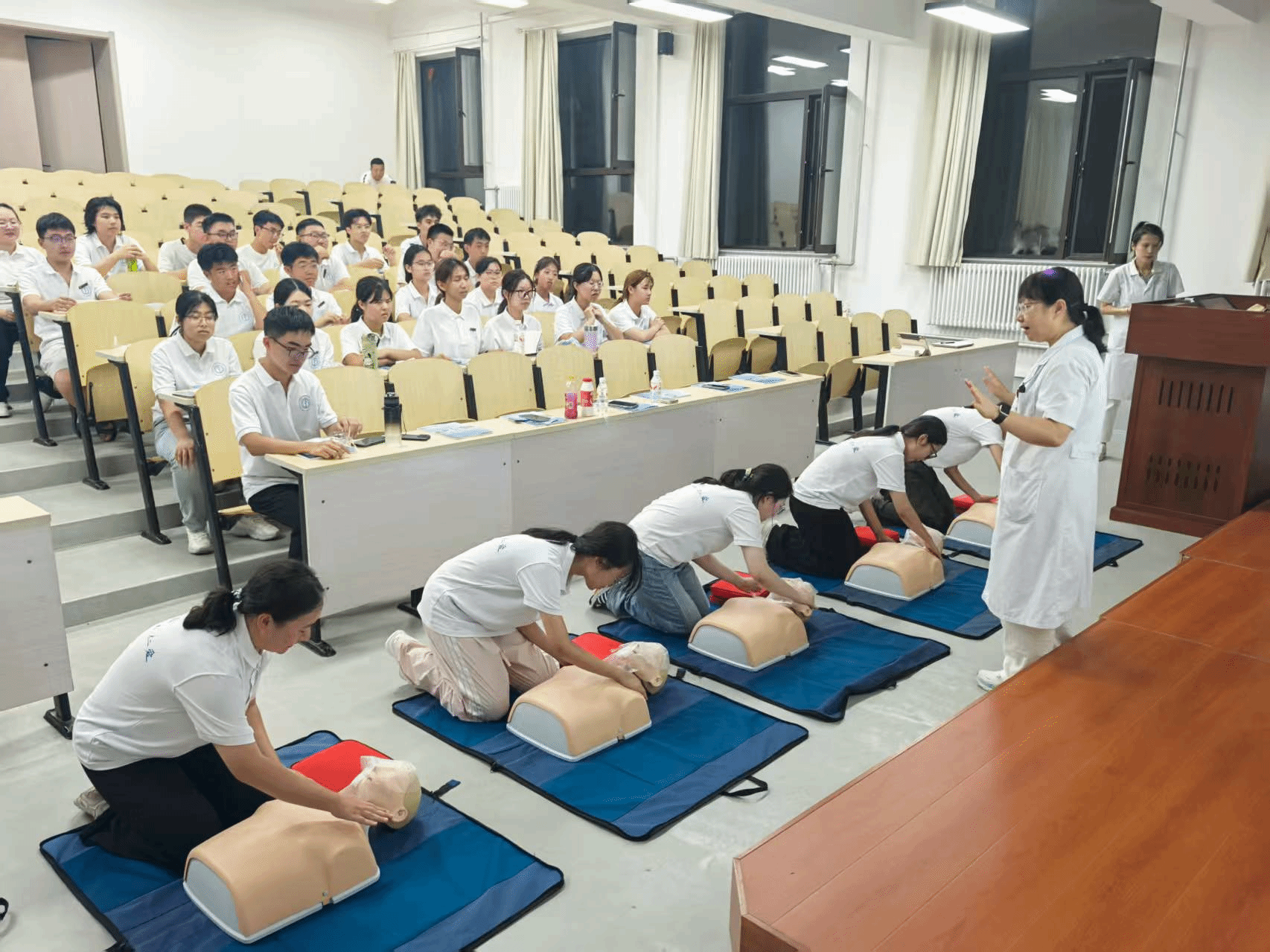 9月5日,学部针对2025级本科生开展急救技能实操培训。培训聚焦校园常见应急场景,重点开展心肺复苏实操教学:由专业医护人员现场示范胸外按压位置、深度与频率标准,指导学生分组使用模拟人练习,并通过设备实时反馈操作效果,帮助本科生扎实掌握急救核心技能。
