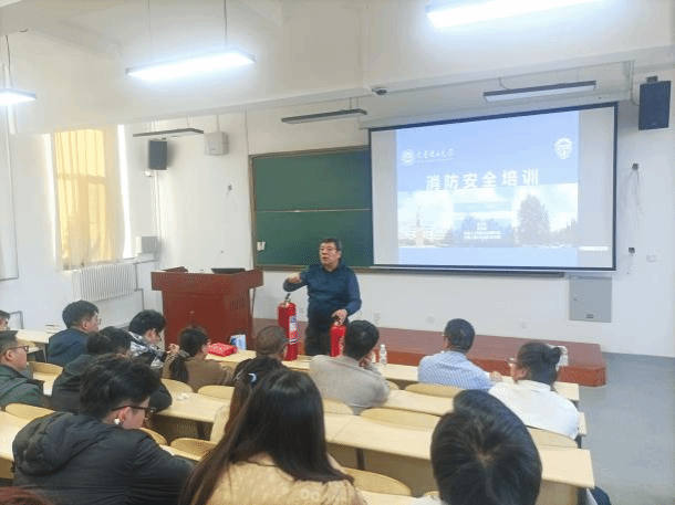 学校保卫处葛衍非老师全程主讲,围绕“前置防控,科学应对”的核心思路,结合科研实验室高频风险场景展开细致讲解。他通过复盘近年高校实验室火灾典型案例,重点剖析了化学试剂违规使用、电路设备老化、实验操作不规范等潜在安全隐患,着重强调了日常安全排查、规范操作流程对于防范火灾事故的关键作用。同时,葛老师现场演示火灾紧急疏散的标准姿态,细致传授自救避险、紧急求救的实用方法,让“隐患不除等于埋祸根,防范到位方能保平安”的安全理念深入人心。