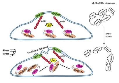 剪切应力激活RhoGDIα及sl-RhoGDIα探针示意图