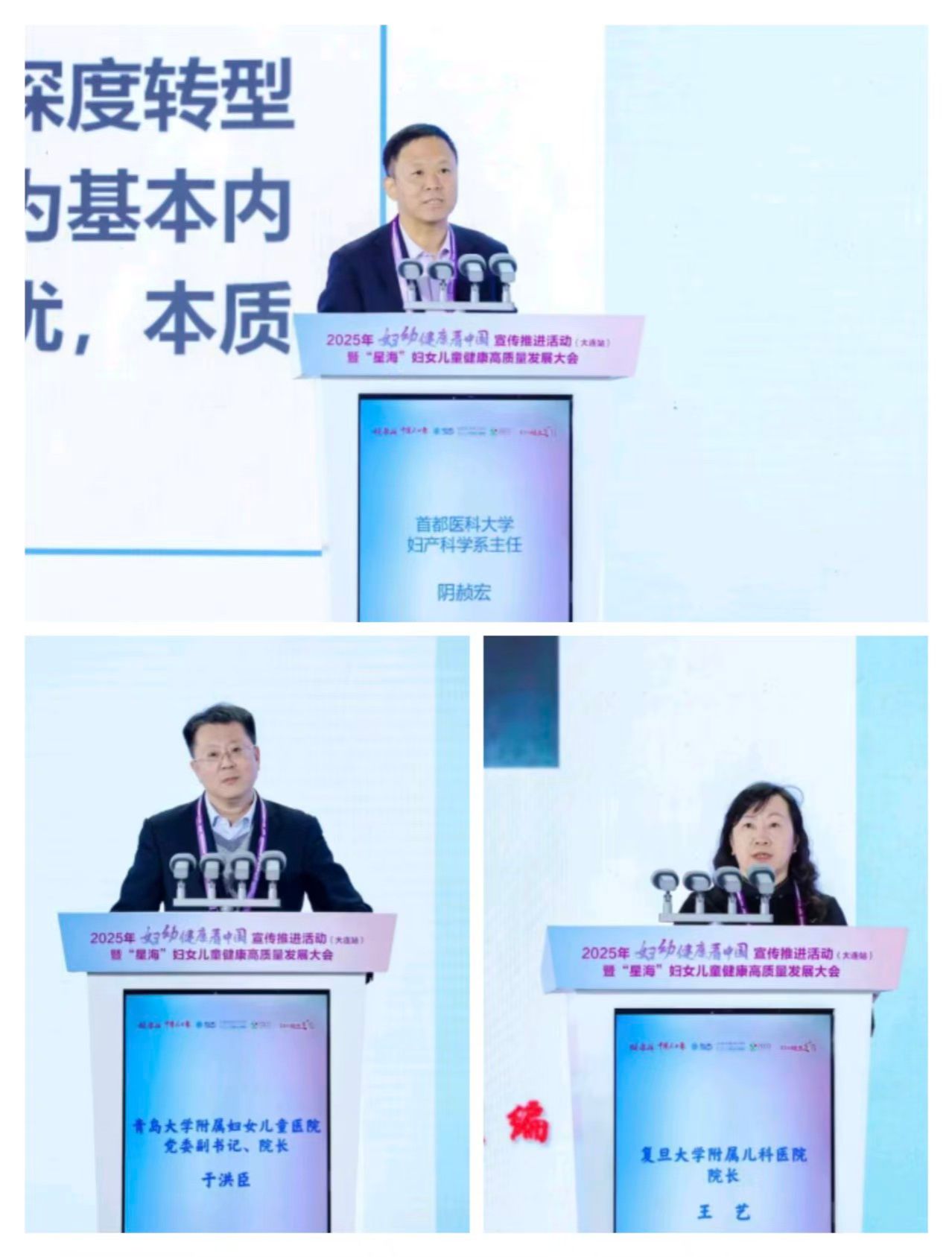 复旦大学附属儿科医院院长王艺以《儿童友好医院的高质量发展与建设》为题,系统解读了儿童友好医院的评价标准与发展内涵;中国医院协会妇产医院分会主任委员、首都医科大学附属北京妇产医院原院长阴赪宏以《科技创新驱动 赋能妇幼新质生产力》为题,深入剖析了科技创新如何重塑妇幼健康服务模式;青岛大学附属妇女儿童医院党委副书记、院长于洪臣以《厚植人文精铸细节 智引未来 开启“双友好”医院建设新篇章》为题分享了医院通过智慧化与人性化服务提升患者体验的实践路径,三位专家分别进行了精彩的主旨演讲。