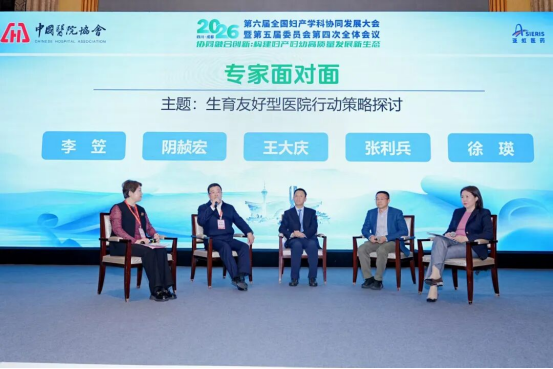 在“专家面对面”环节,王大庆院长与阴赪宏、李笠、张利兵、徐瑛等专家,围绕“生育友好型医院行动策略”,展开深度对话,分享医院在生育友好服务体系建设方面的探索经验。