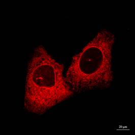 示例1:单光子模式下,人骨肉瘤U2-OS细胞转染mcherry-sec61β探针进行活细胞内质网成像。